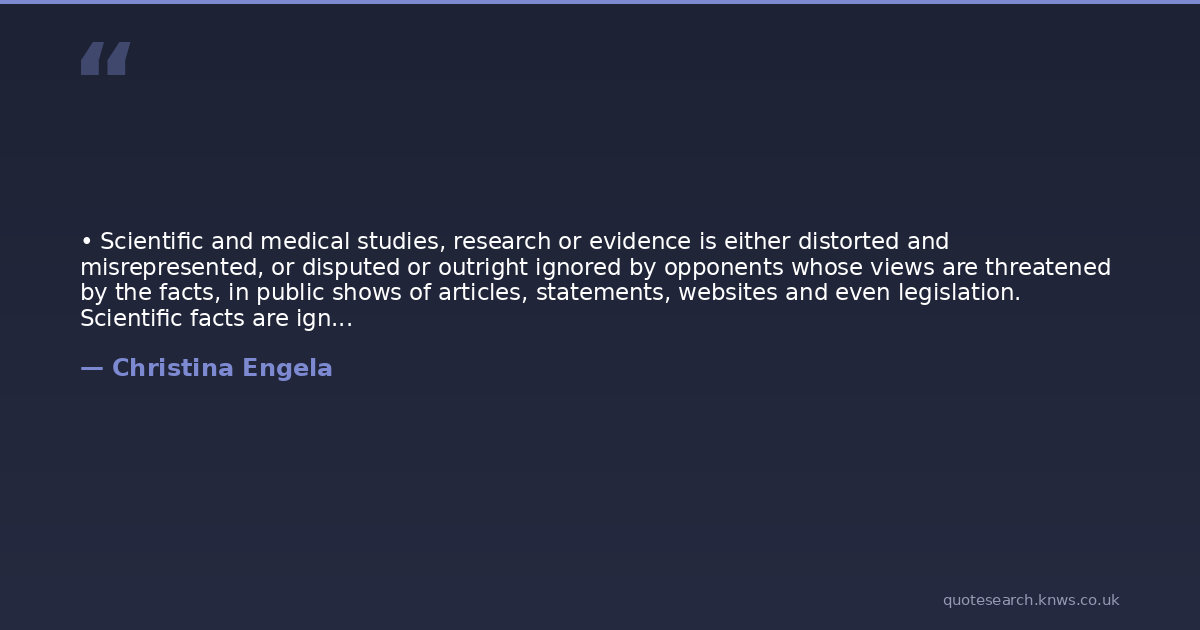 • Scientific and medical studies, research or evidence is either distorted and misrepresented, or disputed or outright ignored by opponents whose views are threatened by the facts, in public shows of articles, statements, websites and even legislation. Scientific facts are ignored or dismissed as being ‘a liberal agenda’ or ‘merely propaganda’.