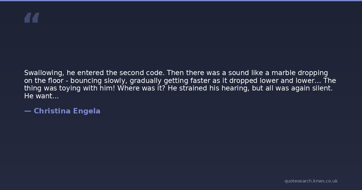 Swallowing, he entered the second code. Then there was a sound like a marble dropping on the floor - bouncing slowly, gradually getting faster as it dropped lower and lower… The thing was toying with him! Where was it? He strained his hearing, but all was again silent. He wanted to shout and scream obscenities at it, but he fought the impulse. It might not really know his location after all - and that would've led it right to him. It must be coming for him! It must be by the door by now, looking for a way in. Time was running out. He hastily keyed in the third and last code.Death the destroyer never is late!
