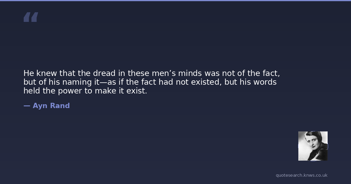 He knew that the dread in these men’s minds was not of the fact, but of his naming it—as if the fact had not existed, but his words held the power to make it exist.