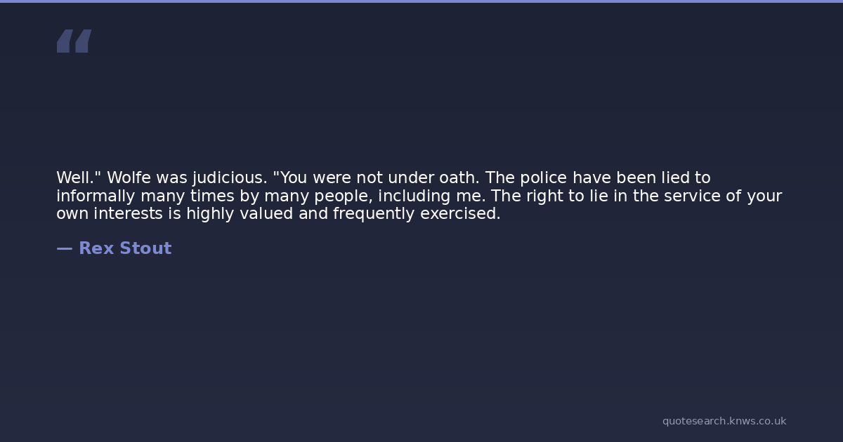 Well." Wolfe was judicious. "You were not under oath. The police have been lied to informally many times by many people, including me. The right to lie in the service of your own interests is highly valued and frequently exercised.