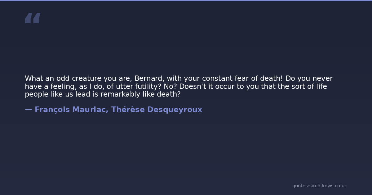 What an odd creature you are, Bernard, with your constant fear of death! Do you never have a feeling, as I do, of utter futility? No? Doesn't it occur to you that the sort of life people like us lead is remarkably like death?