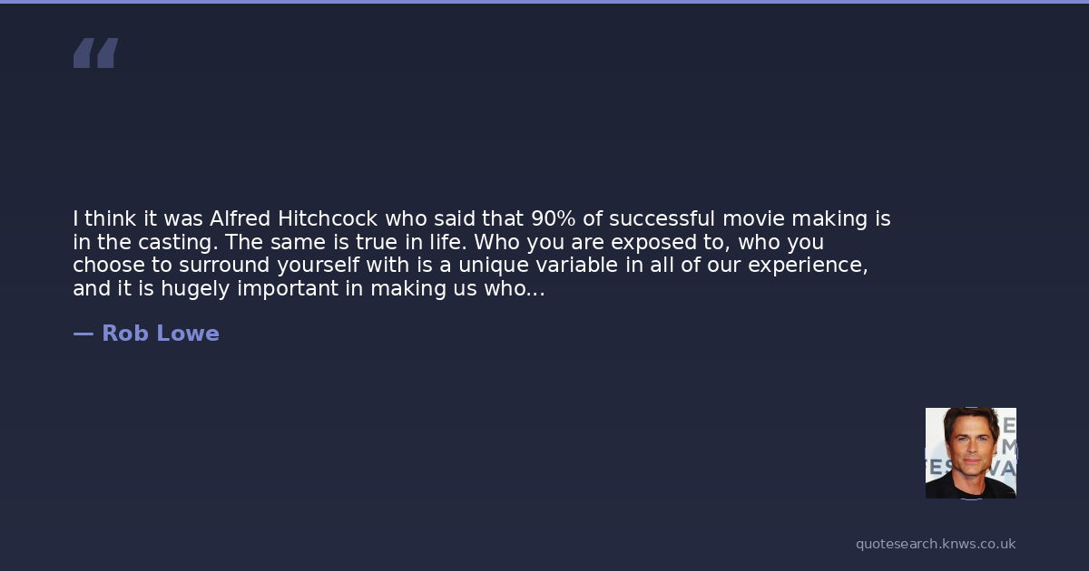 I think it was Alfred Hitchcock who said that 90% of successful movie making is in the casting. The same is true in life. Who you are exposed to, who you choose to surround yourself with is a unique variable in all of our experience, and it is hugely important in making us who we are.