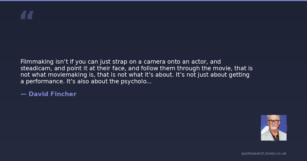 Filmmaking isn’t if you can just strap on a camera onto an actor, and steadicam, and point it at their face, and follow them through the movie, that is not what moviemaking is, that is not what it’s about. It’s not just about getting a performance. It’s also about the psychology of the cinematic moment, and the psychology of the presentation of that, of that window.