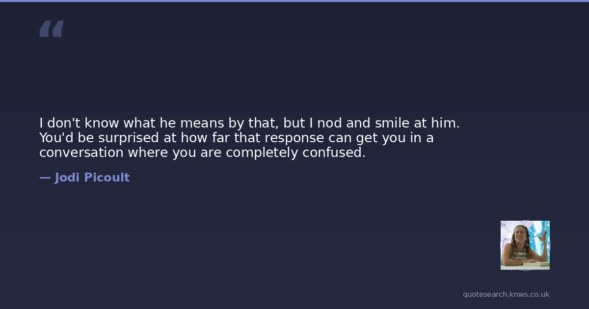 I don't know what he means by that, but I nod and smile at him. You'd be surprised at how far that response can get you in a conversation where you are completely confused.
