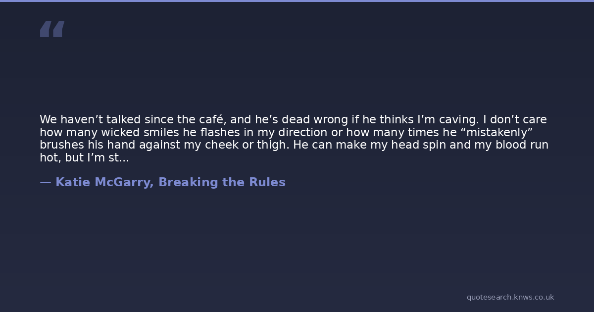 We haven’t talked since the café, and he’s dead wrong if he thinks I’m caving. I don’t care how many wicked smiles he flashes in my direction or how many times he “mistakenly” brushes his hand against my cheek or thigh. He can make my head spin and my blood run hot, but I’m strong enough to resist his every temptation.