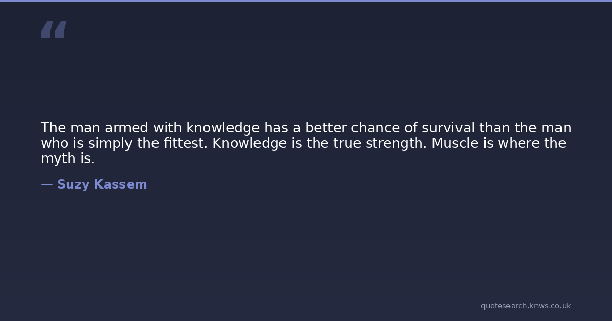 The man armed with knowledge has a better chance of survival than the man who is simply the fittest. Knowledge is the true strength. Muscle is where the myth is.