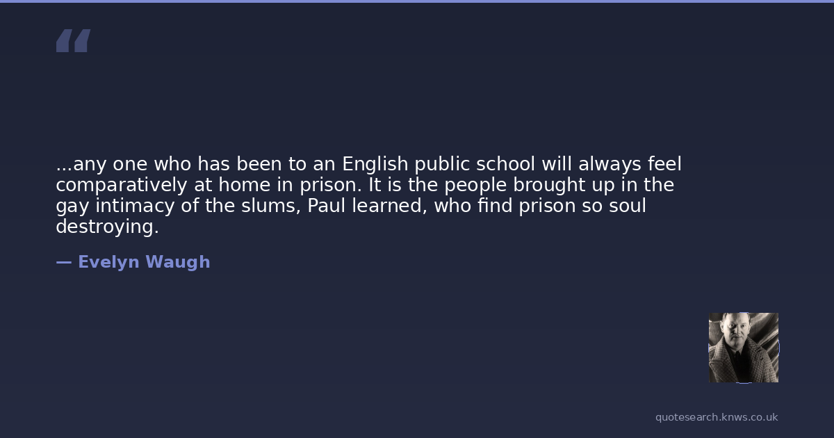 ...any one who has been to an English public school will always feel comparatively at home in prison. It is the people brought up in the gay intimacy of the slums, Paul learned, who find prison so soul destroying.