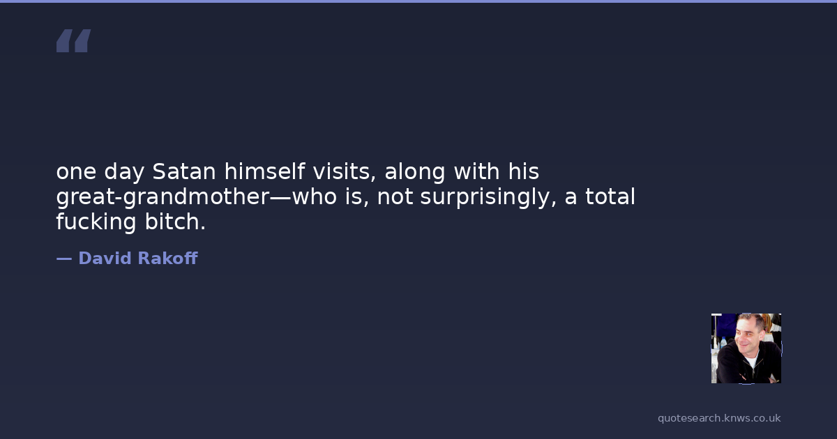 one day Satan himself visits, along with his great-grandmother—who is, not surprisingly, a total fucking bitch.