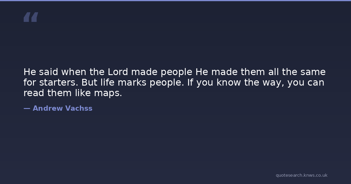 He said when the Lord made people He made them all the same for starters. But life marks people. If you know the way, you can read them like maps.