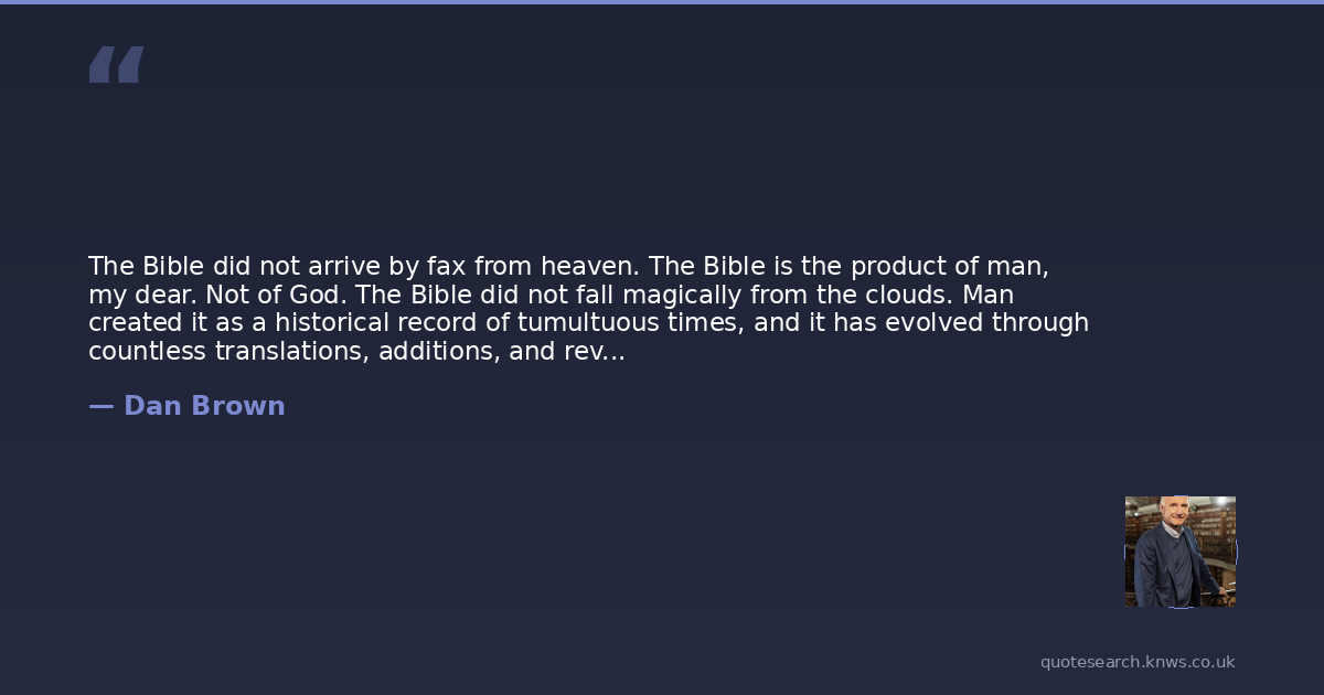 The Bible did not arrive by fax from heaven. The Bible is the product of man, my dear. Not of God. The Bible did not fall magically from the clouds. Man created it as a historical record of tumultuous times, and it has evolved through countless translations, additions, and revisions. History has never had a definitive version of the book.