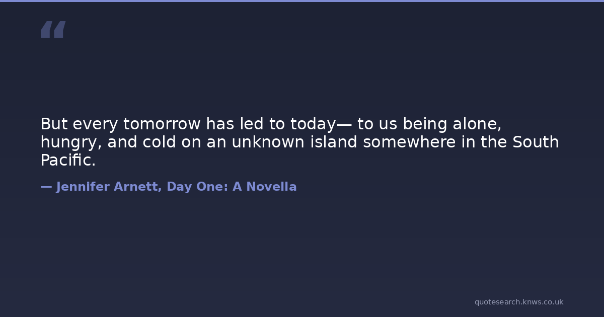 But every tomorrow has led to today— to us being alone, hungry, and cold on an unknown island somewhere in the South Pacific.