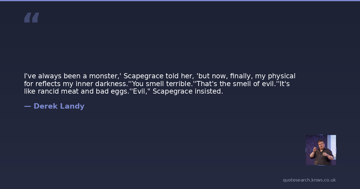 I've always been a monster,' Scapegrace told her, 'but now, finally, my physical for reflects my inner darkness.''You smell terrible.''That's the smell of evil.''It's like rancid meat and bad eggs.''Evil," Scapegrace insisted.