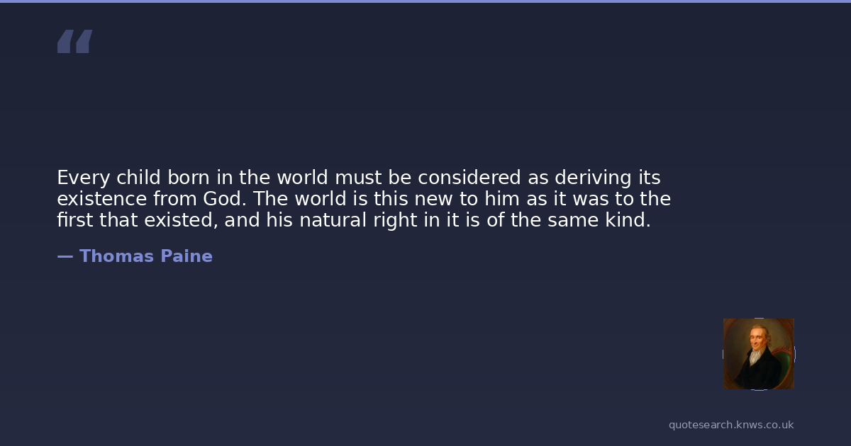 Every child born in the world must be considered as deriving its existence from God. The world is this new to him as it was to the first that existed, and his natural right in it is of the same kind.