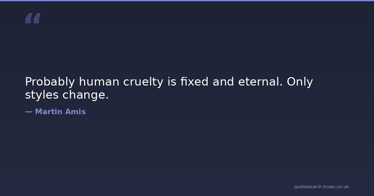 Probably human cruelty is fixed and eternal. Only styles change. cruelty Download Image Share on X Share on Facebook Copy Link