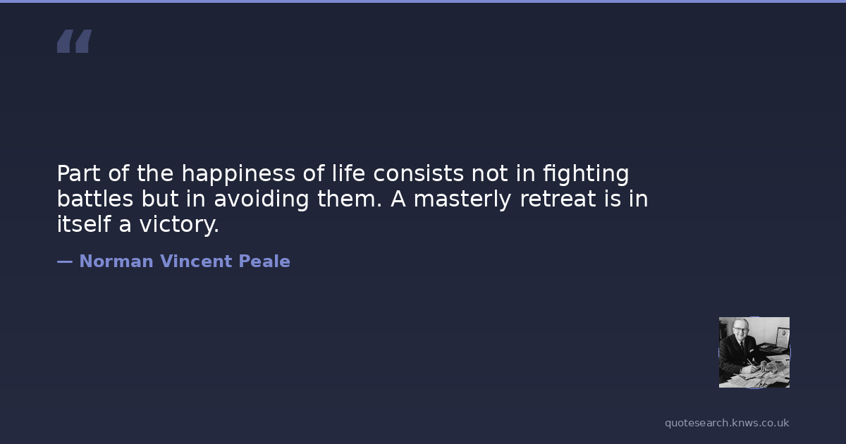 Part of the happiness of life consists not in fighting battles but in avoiding them. A masterly retreat is in itself a victory.