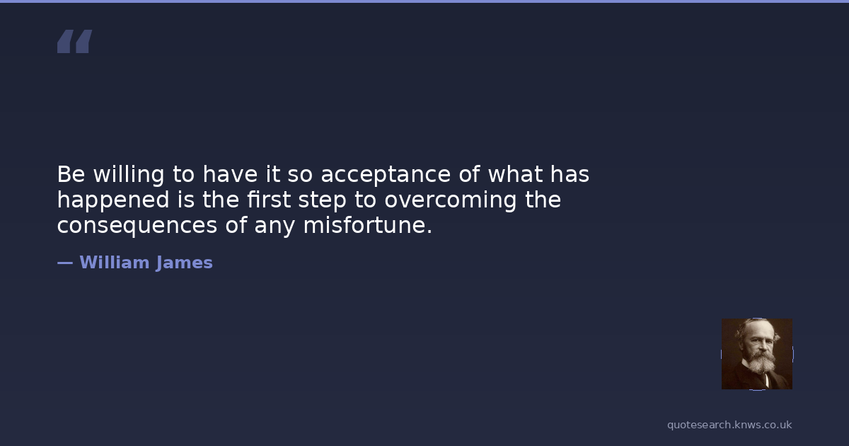 Be willing to have it so acceptance of what has happened is the first step to overcoming the consequences of any misfortune.