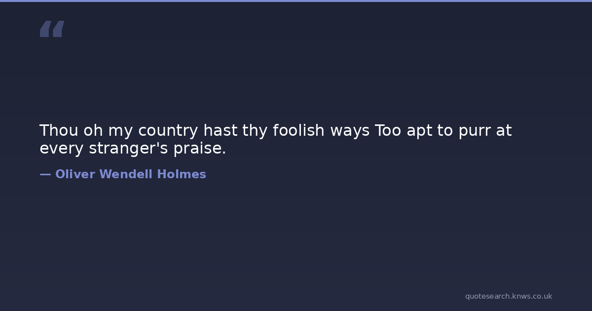 Thou oh my country hast thy foolish ways Too apt to purr at every stranger's praise.