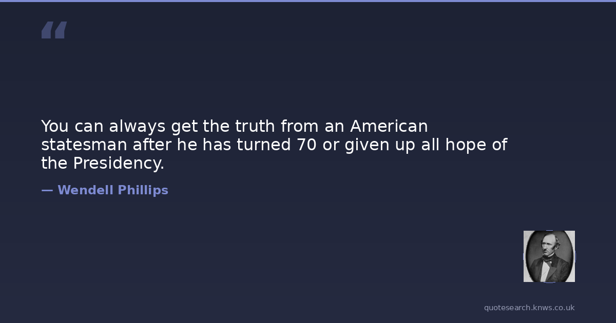 Wendell Phillips was a 19th-century American abolitionist and advocate. Wendell Phillips was an American abolitionist, labor reformer, temperance activist, advocate for Native Americans, orator, and attorney. Read more on Wikipedia →