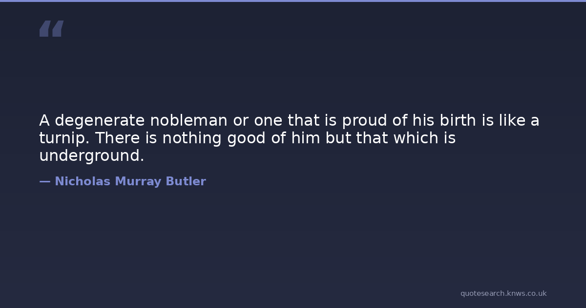 A degenerate nobleman or one that is proud of his birth is like a turnip. There is nothing good of him but that which is underground.