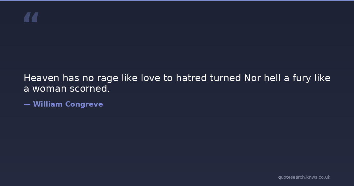 Heaven has no rage like love to hatred turned Nor hell a fury like a woman scorned.