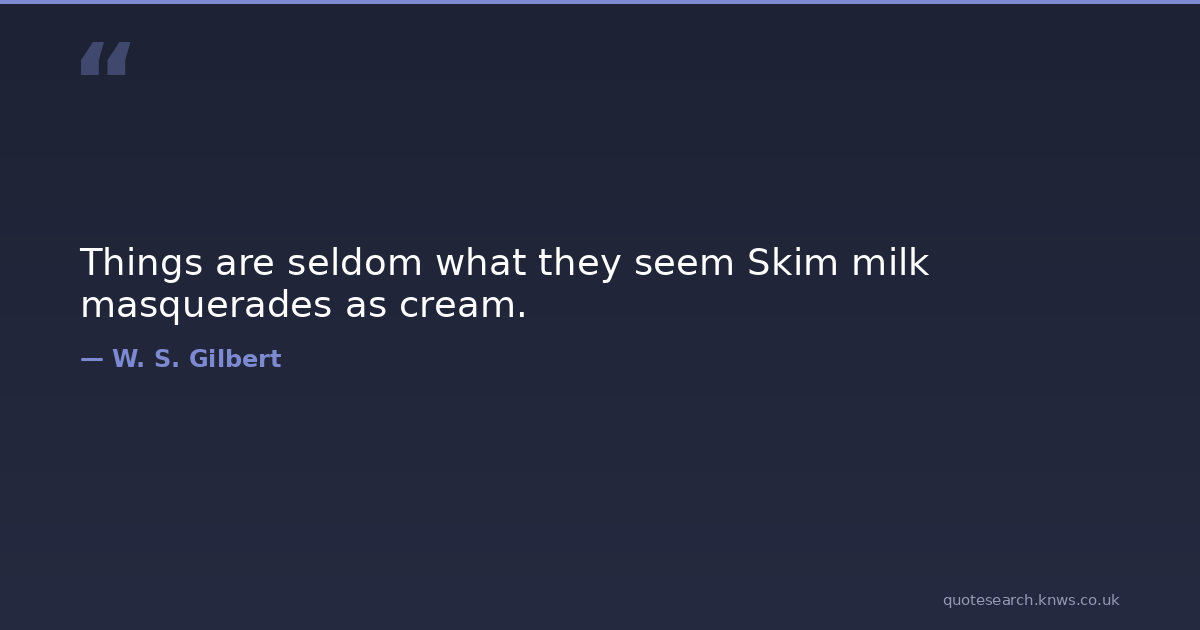 Things are seldom what they seem Skim milk masquerades as cream.