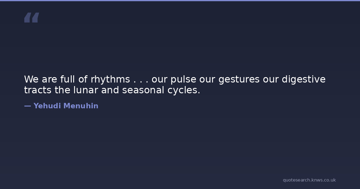 We are full of rhythms . . . our pulse our gestures our digestive tracts the lunar and seasonal cycles.
