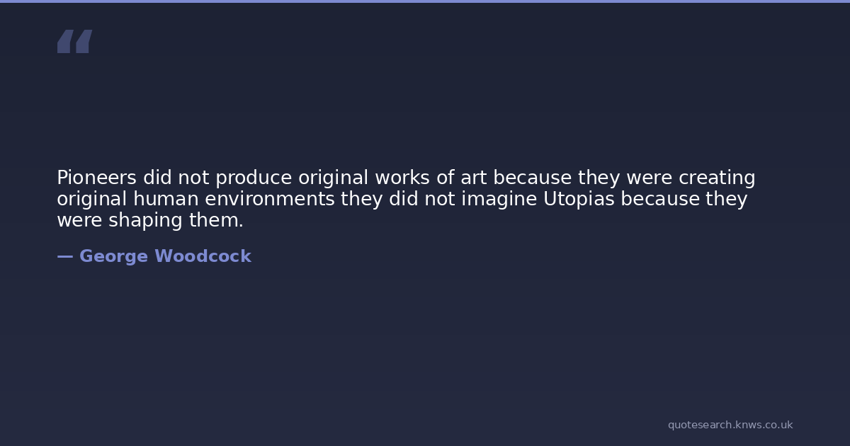 Pioneers did not produce original works of art because they were creating original human environments they did not imagine Utopias because they were shaping them.