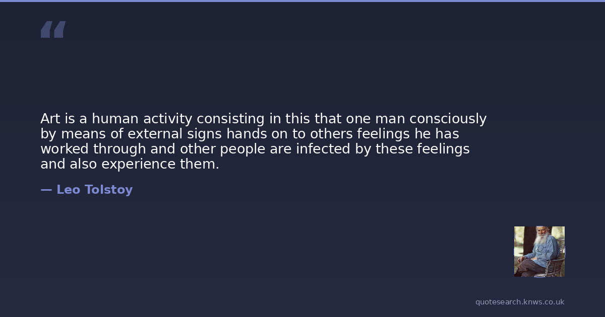 Art is a human activity consisting in this that one man consciously by means of external signs hands on to others feelings he has worked through and other people are infected by these feelings and also experience them.