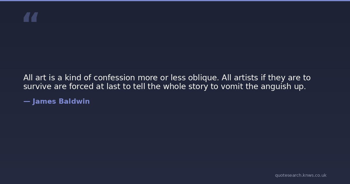 All art is a kind of confession more or less oblique. All artists if they are to survive are forced at last to tell the whole story to vomit the anguish up.