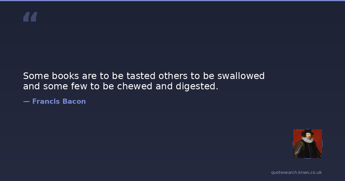 Some books are to be tasted others to be swallowed and some few to be chewed and digested.
