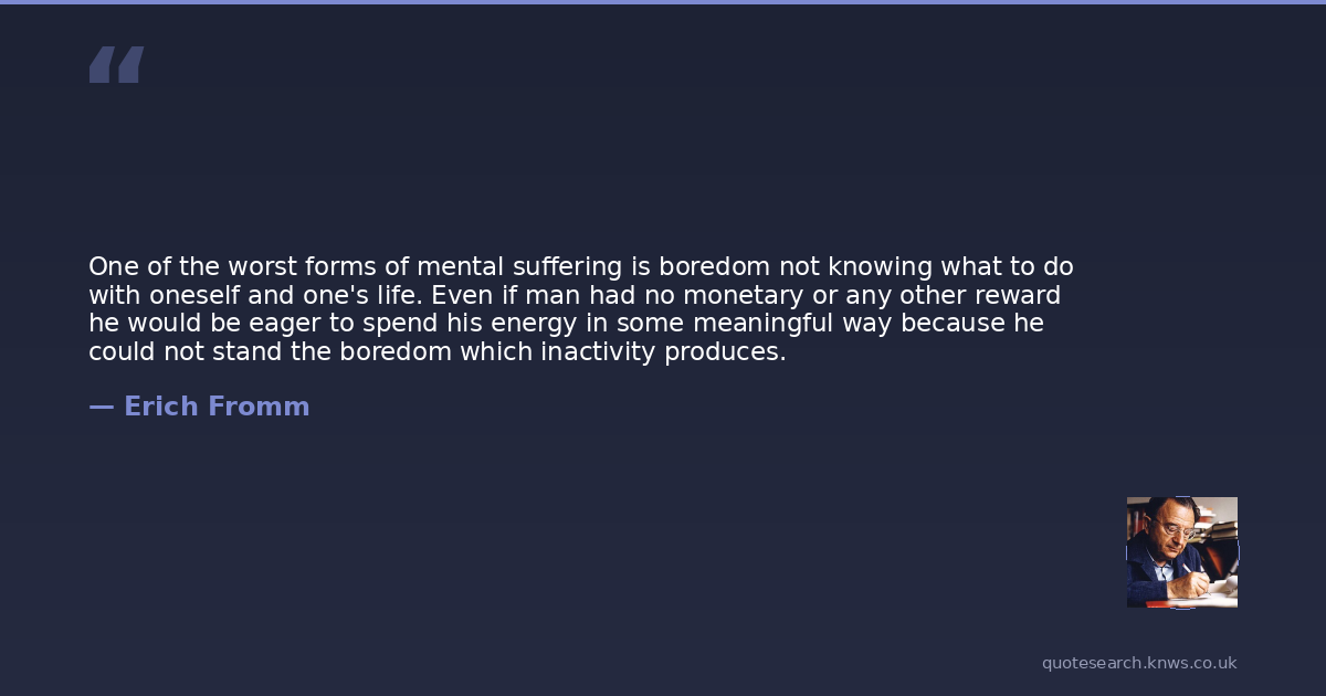 One of the worst forms of mental suffering is boredom not knowing what to do with oneself and one's life. Even if man had no monetary or any other reward he would be eager to spend his energy in some meaningful way because he could not stand the boredom which inactivity produces.