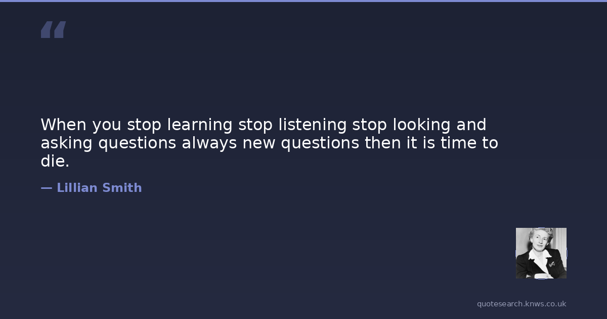 When you stop learning stop listening stop looking and asking questions always new questions then it is time to die.