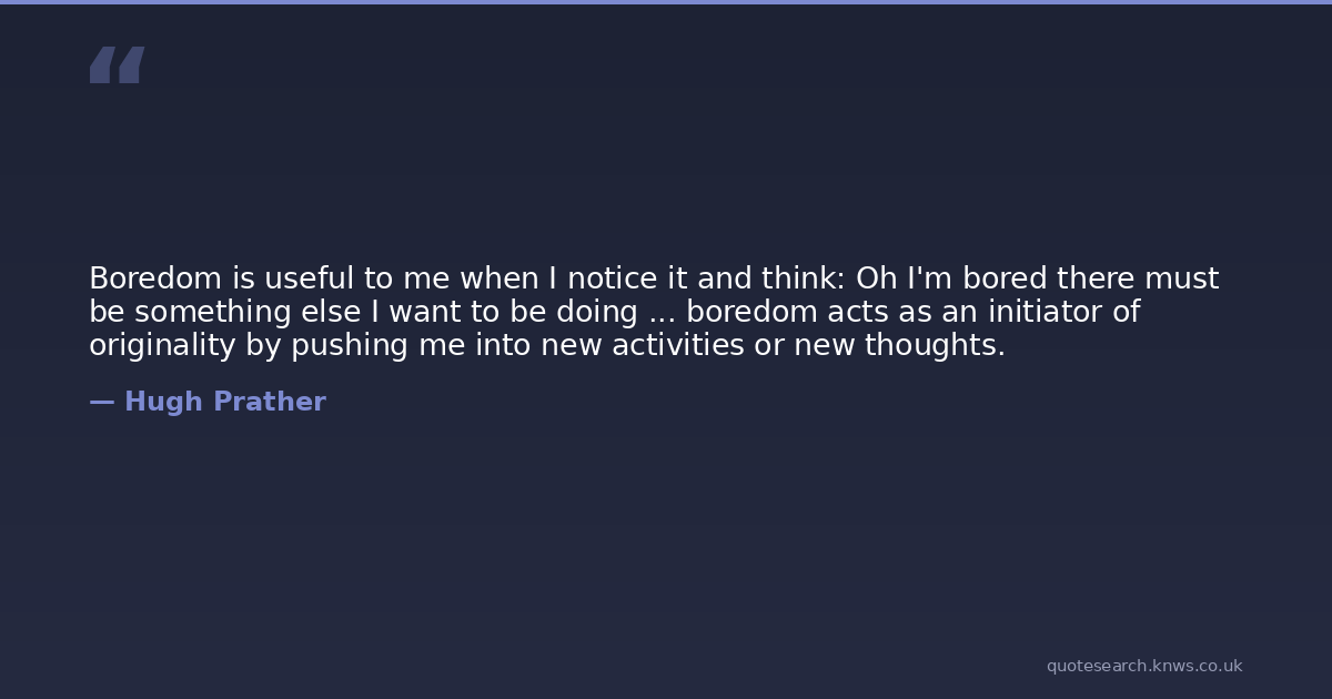 Boredom is useful to me when I notice it and think: Oh I'm bored there must be something else I want to be doing ... boredom acts as an initiator of originality by pushing me into new activities or new thoughts.
