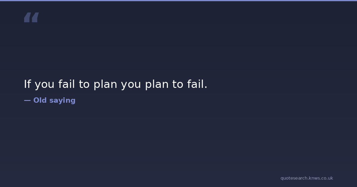 If you fail to plan you plan to fail.