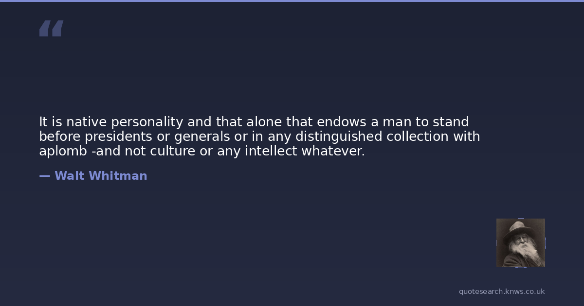 It is native personality and that alone that endows a man to stand before presidents or generals or in any distinguished collection with aplomb -and not culture or any intellect whatever.