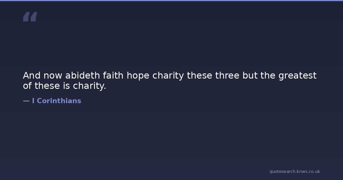 And now abideth faith hope charity these three but the greatest of these is charity. charity Download Image Share on X Share on Facebook Copy Link