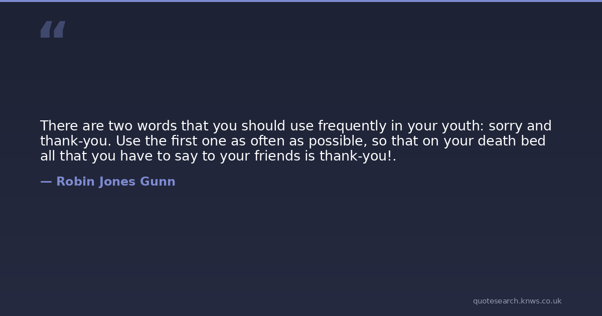There are two words that you should use frequently in your youth: sorry and thank-you. Use the first one as often as possible, so that on your death bed all that you have to say to your friends is thank-you!.