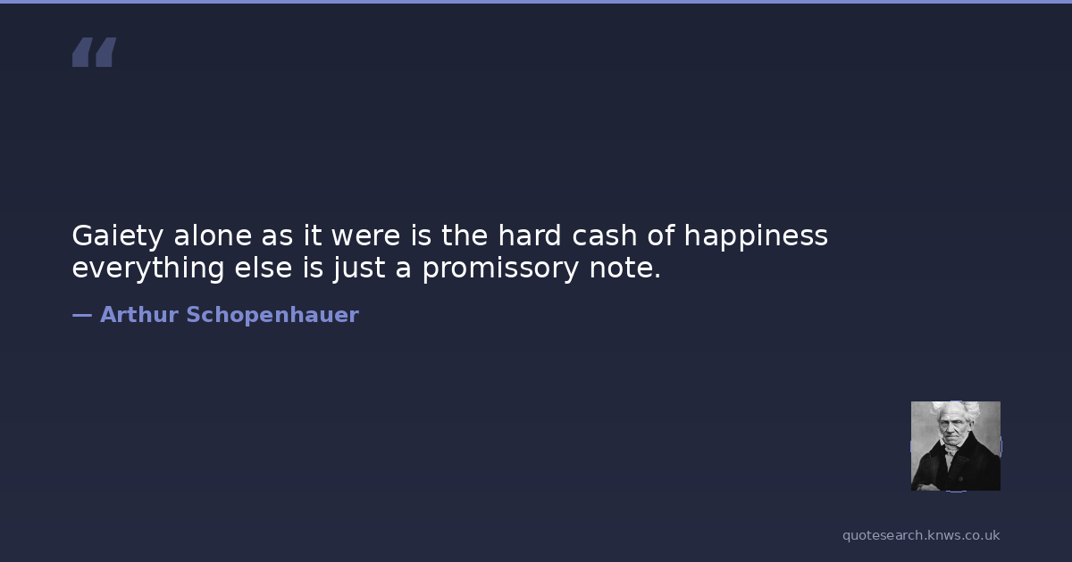 Gaiety alone as it were is the hard cash of happiness everything else is just a promissory note.