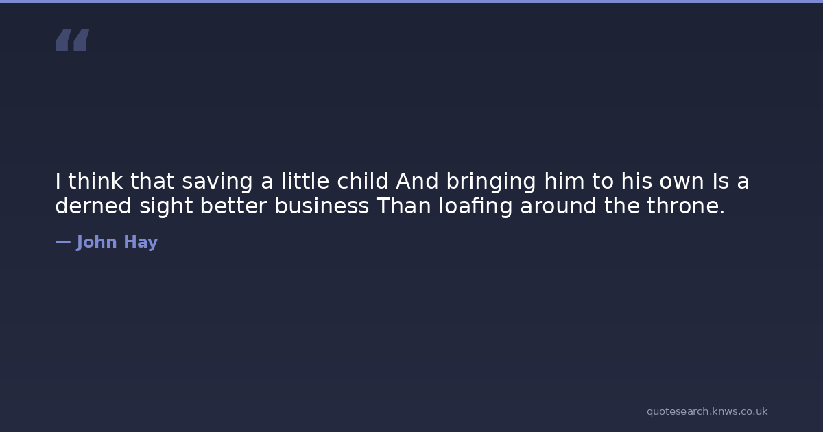 I think that saving a little child And bringing him to his own Is a derned sight better business Than loafing around the throne.