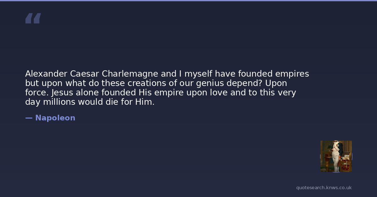Alexander Caesar Charlemagne and I myself have founded empires but upon what do these creations of our genius depend? Upon force. Jesus alone founded His empire upon love and to this very day millions would die for Him.
