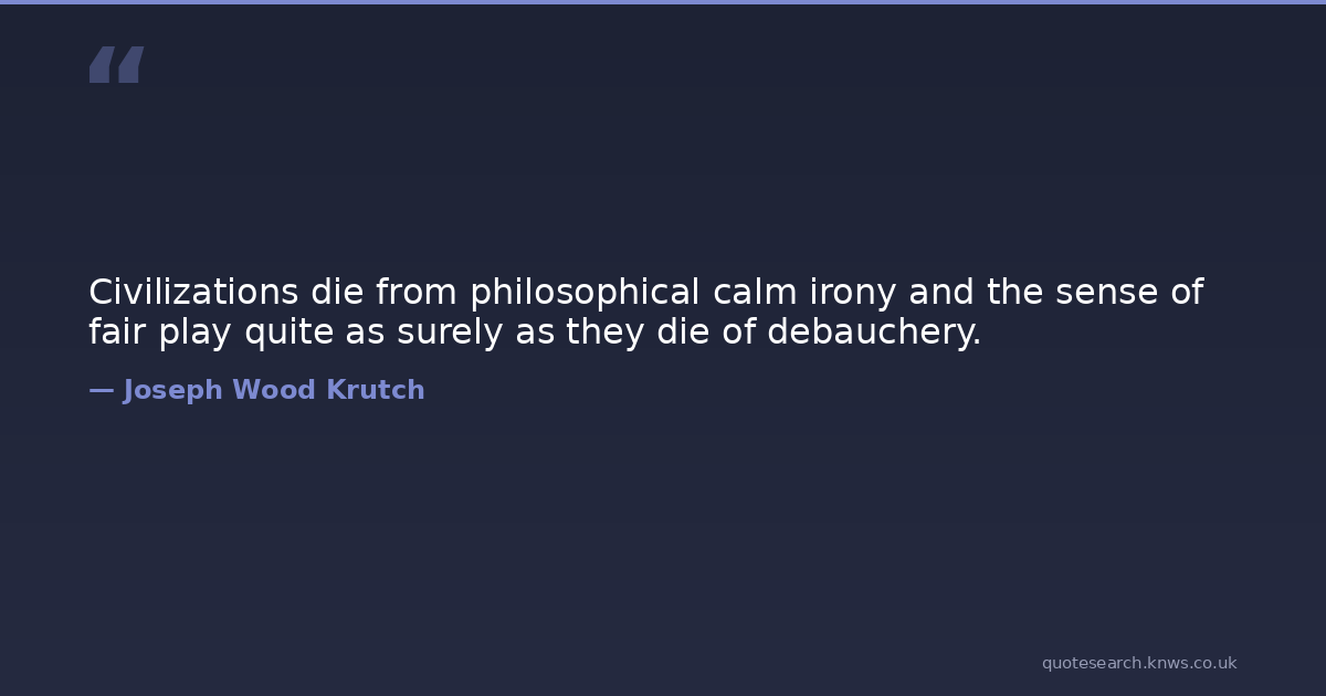 Civilizations die from philosophical calm irony and the sense of fair play quite as surely as they die of debauchery.