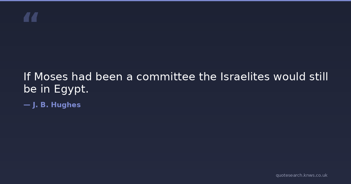 If Moses had been a committee the Israelites would still be in Egypt. clubs institutions Download Image Share on X Share on Facebook Copy Link