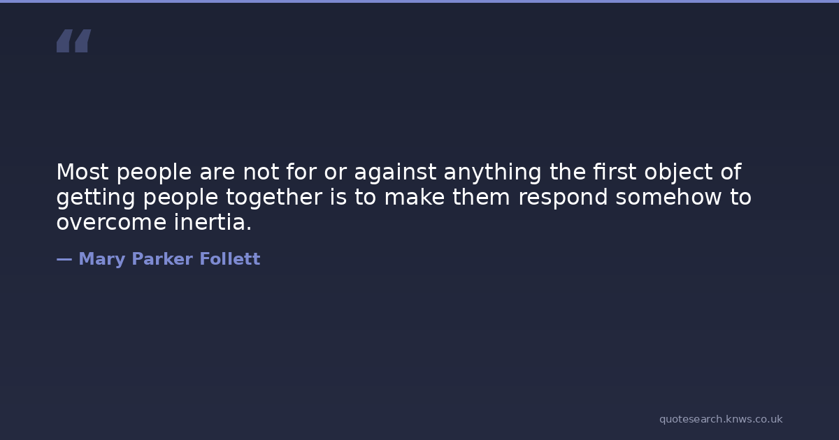 Most people are not for or against anything the first object of getting people together is to make them respond somehow to overcome inertia.