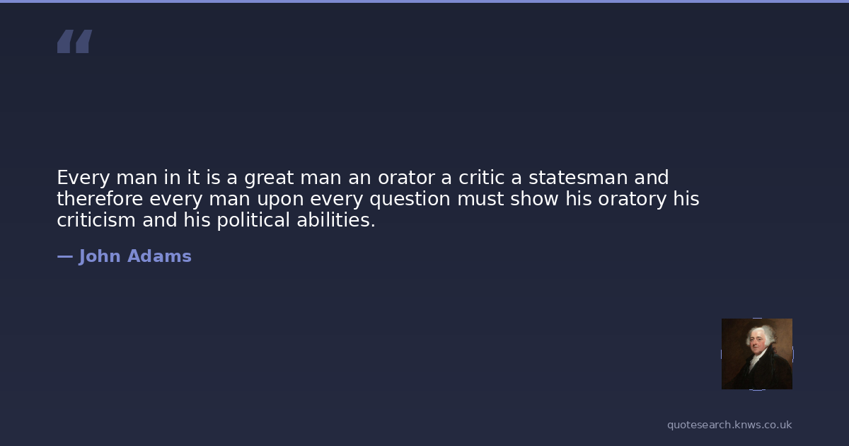 Every man in it is a great man an orator a critic a statesman and therefore every man upon every question must show his oratory his criticism and his political abilities.