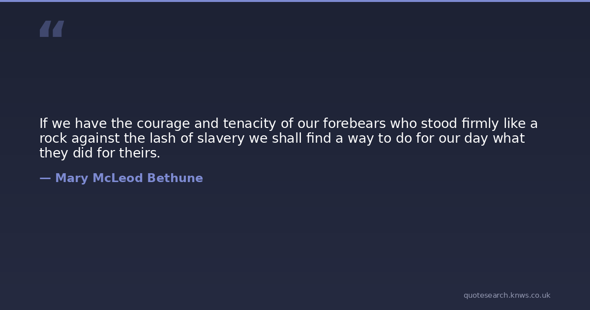 If we have the courage and tenacity of our forebears who stood firmly like a rock against the lash of slavery we shall find a way to do for our day what they did for theirs.