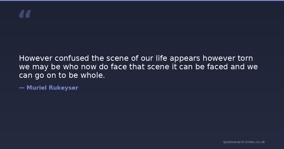 However confused the scene of our life appears however torn we may be who now do face that scene it can be faced and we can go on to be whole.