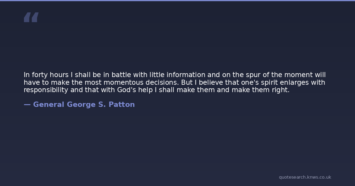 In forty hours I shall be in battle with little information and on the spur of the moment will have to make the most momentous decisions. But I believe that one's spirit enlarges with responsibility and that with God's help I shall make them and make them right.