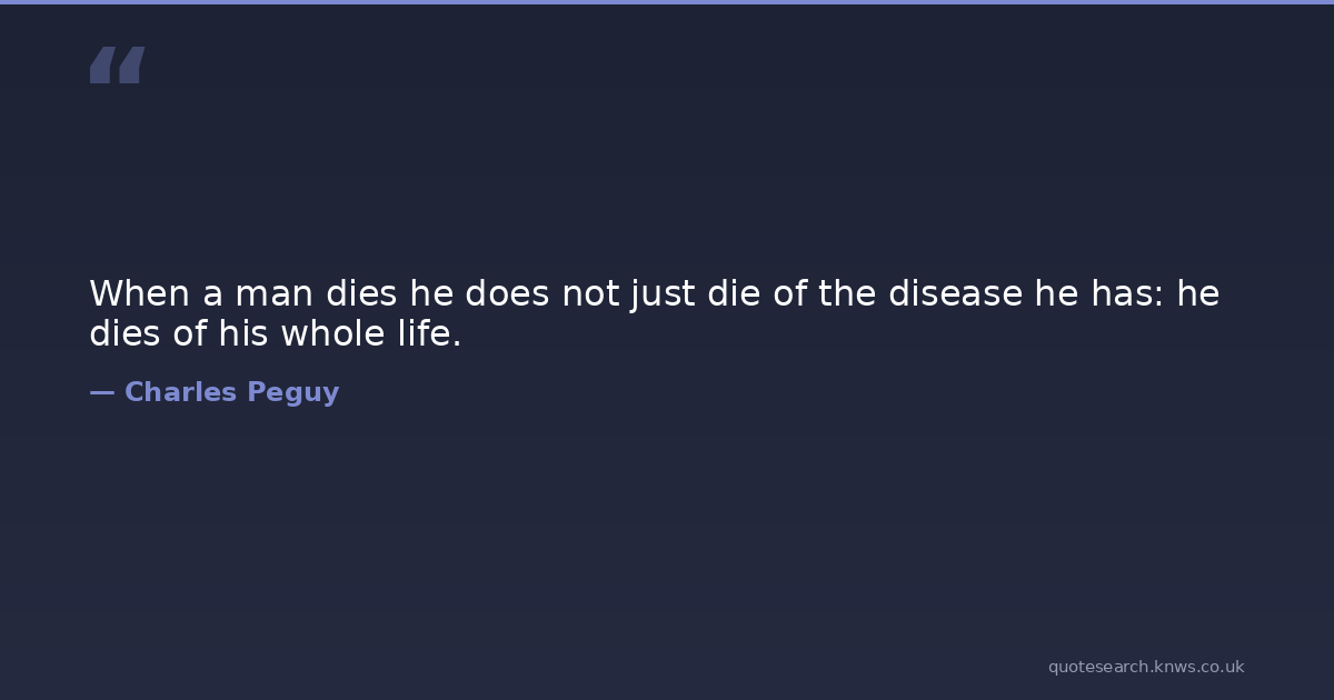 When a man dies he does not just die of the disease he has: he dies of his whole life.