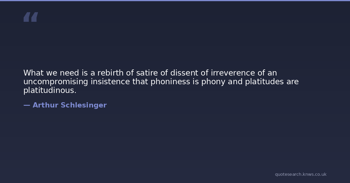 What we need is a rebirth of satire of dissent of irreverence of an uncompromising insistence that phoniness is phony and platitudes are platitudinous.