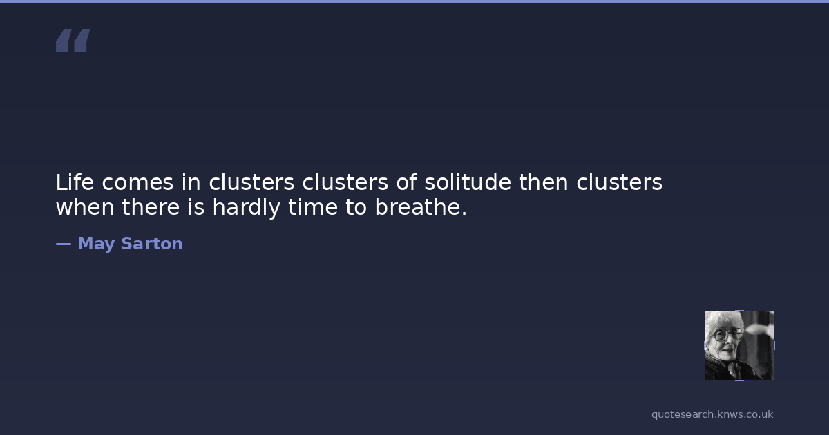 Life comes in clusters clusters of solitude then clusters when there is hardly time to breathe.